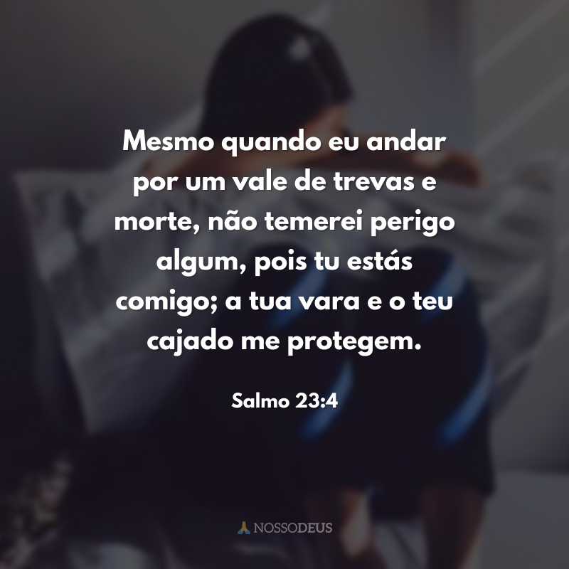 Mesmo quando eu andar por um vale de trevas e morte, não temerei perigo algum, pois tu estás comigo; a tua vara e o teu cajado me protegem.