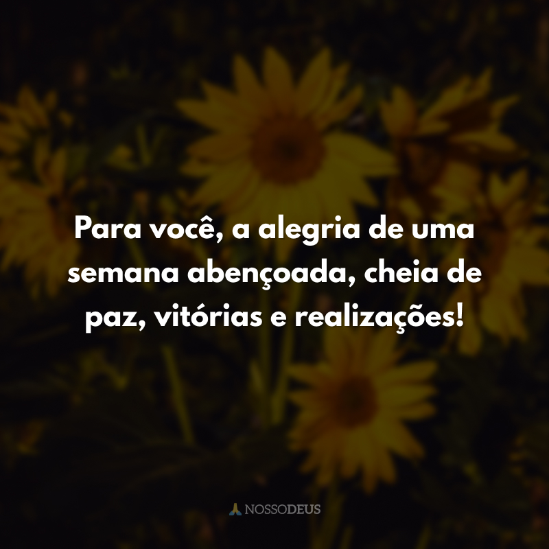 Para você, a alegria de uma semana abençoada, cheia de paz, vitórias e realizações!