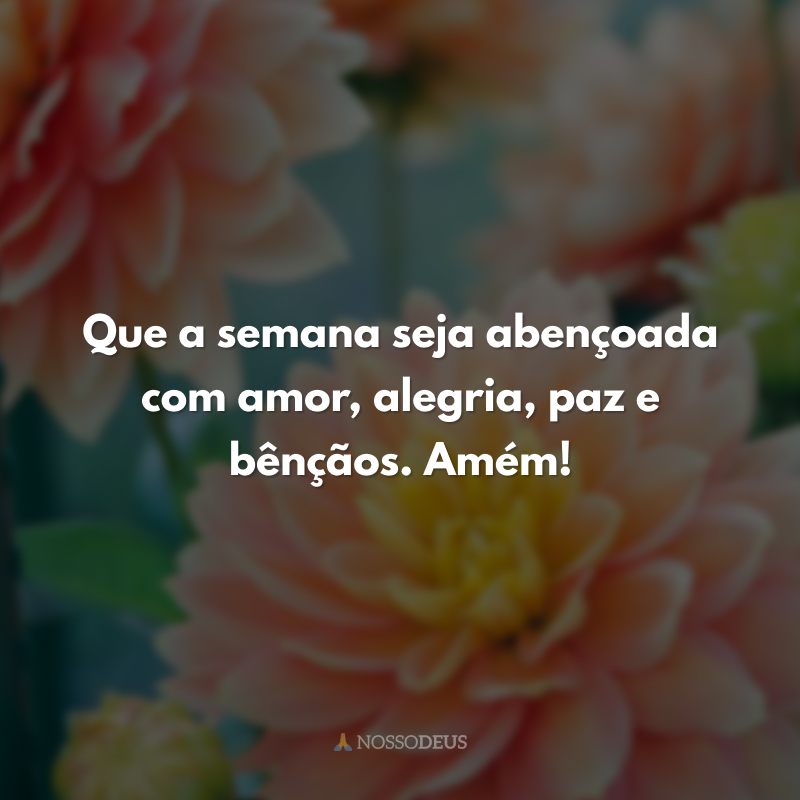 Que a semana seja abençoada com amor, alegria, paz e bênçãos. Amém!