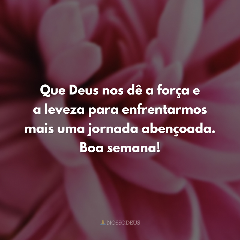 Que Deus nos dê a força e a leveza para enfrentarmos mais uma jornada abençoada. Boa semana!