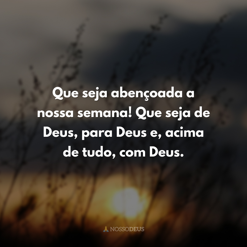 Que seja abençoada a nossa semana! Que seja de Deus, para Deus e, acima de tudo, com Deus.