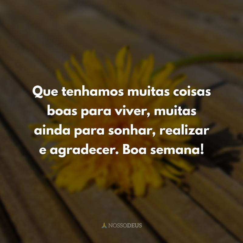 Que tenhamos muitas coisas boas para viver, muitas ainda para sonhar, realizar e agradecer. Boa semana!
