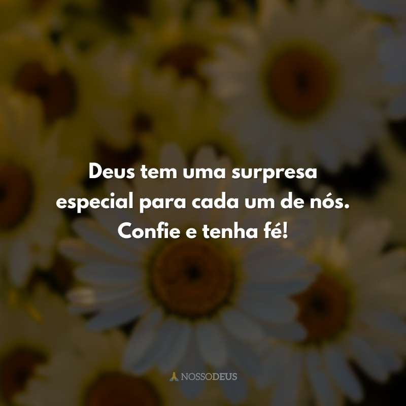 Deus tem uma surpresa especial para cada um de nós. Confie e tenha fé!