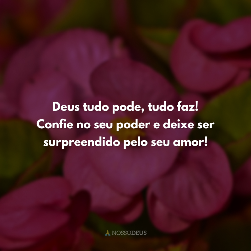 Deus tudo pode, tudo faz! Confie no seu poder e deixe ser surpreendido pelo seu amor!