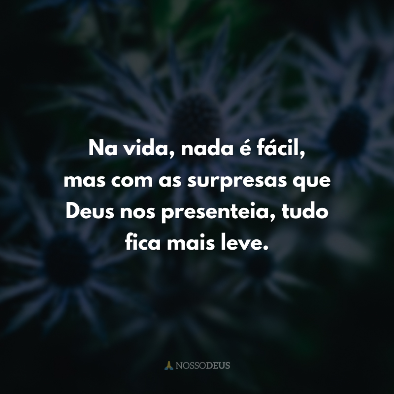 Na vida, nada é fácil, mas com as surpresas que Deus nos presenteia, tudo fica mais leve.