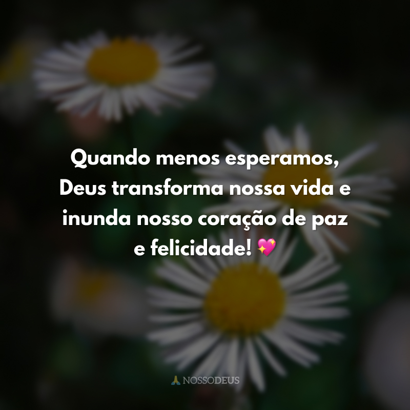 Quando menos esperamos, Deus transforma nossa vida e inunda nosso coração de paz e felicidade! 💖