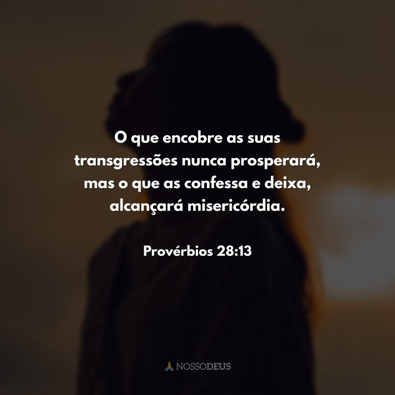 O que encobre as suas transgressões nunca prosperará, mas o que as confessa e deixa, alcançará misericórdia.