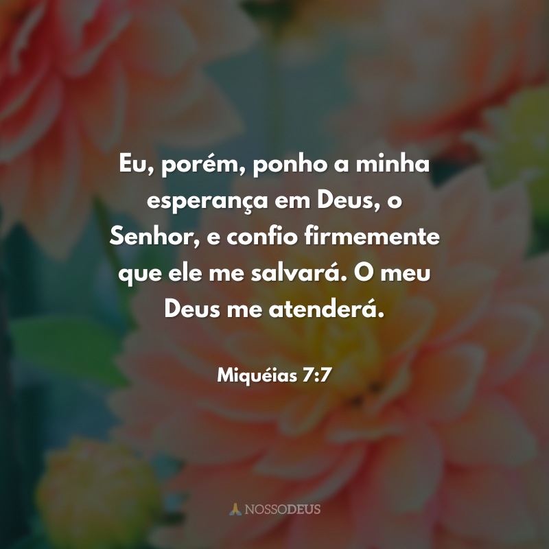 Eu, porém, ponho a minha esperança em Deus, o Senhor, e confio firmemente que ele me salvará. O meu Deus me atenderá.