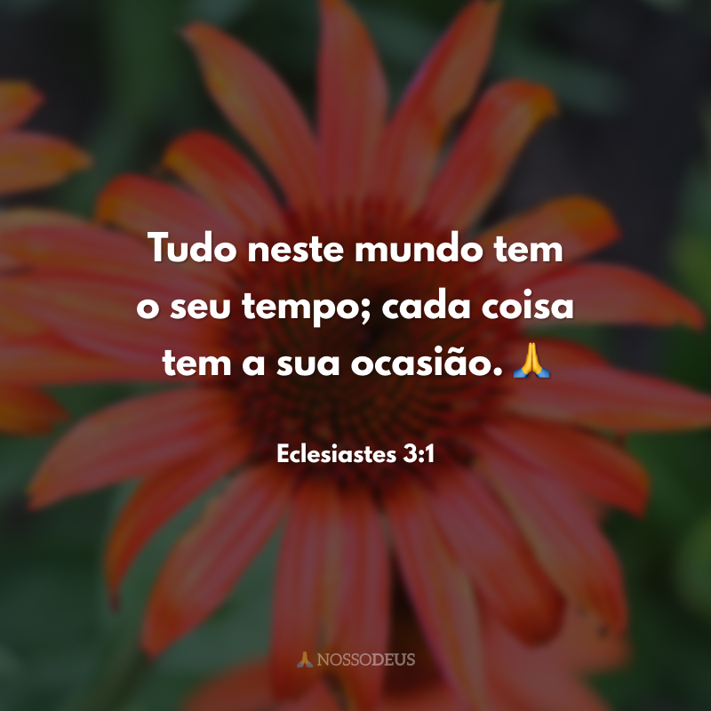 Tudo neste mundo tem o seu tempo; cada coisa tem a sua ocasião. 🙏