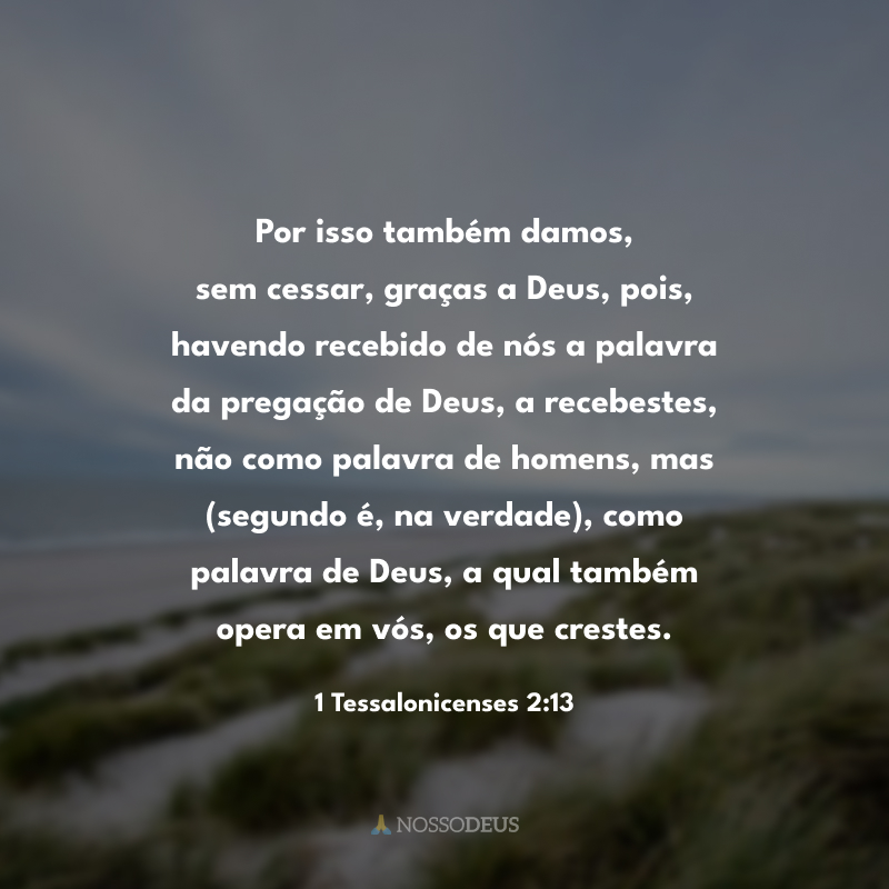 Por isso também damos, sem cessar, graças a Deus, pois, havendo recebido de nós a palavra da pregação de Deus, a recebestes, não como palavra de homens, mas (segundo é, na verdade), como palavra de Deus, a qual também opera em vós, os que crestes.