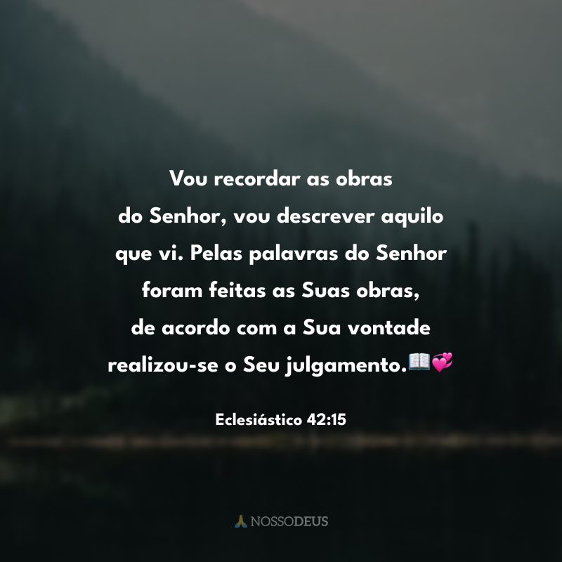 Vou recordar as obras do Senhor, vou descrever aquilo que vi. Pelas palavras do Senhor foram feitas as Suas obras, de acordo com a Sua vontade realizou-se o Seu julgamento.📖💞