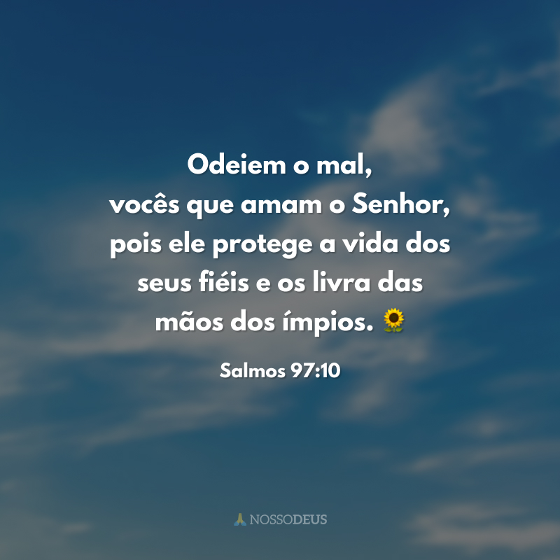 Odeiem o mal, vocês que amam o Senhor, pois ele protege a vida dos seus fiéis e os livra das mãos dos ímpios. 🌻