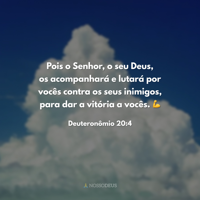 Pois o Senhor, o seu Deus, os acompanhará e lutará por vocês contra os seus inimigos, para dar a vitória a vocês. 💪