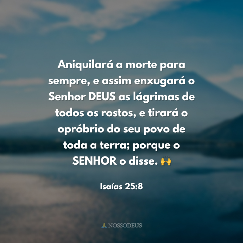 Aniquilará a morte para sempre, e assim enxugará o Senhor DEUS as lágrimas de todos os rostos, e tirará o opróbrio do seu povo de toda a terra; porque o SENHOR o disse. 🙌