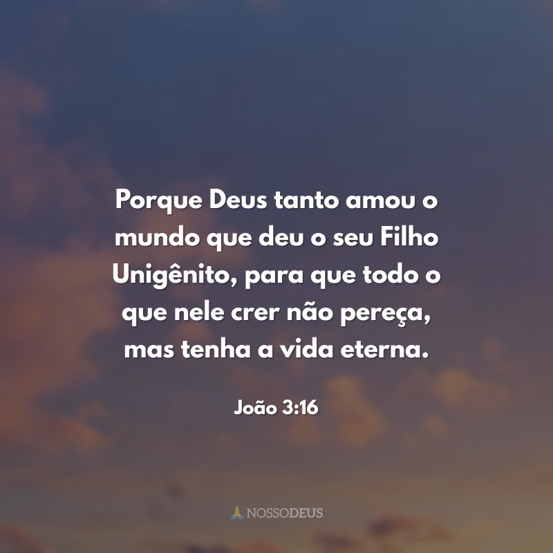 Porque Deus tanto amou o mundo que deu o seu Filho Unigênito, para que todo o que nele crer não pereça, mas tenha a vida eterna.