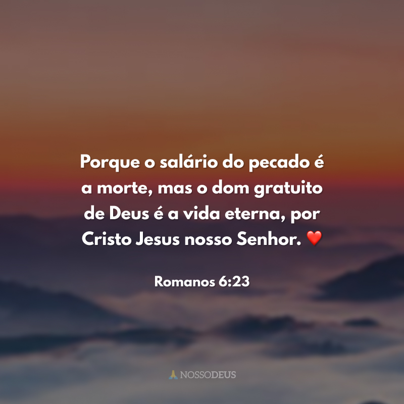 Porque o salário do pecado é a morte, mas o dom gratuito de Deus é a vida eterna, por Cristo Jesus nosso Senhor. ❤️