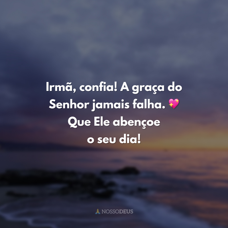 Irmã, confia! A graça do Senhor jamais falha. 💖 Que Ele abençoe o seu dia!
