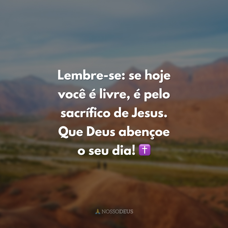 Lembre-se: se hoje você é livre, é pelo sacrífico de Jesus. Que Deus abençoe o seu dia! ✝️
