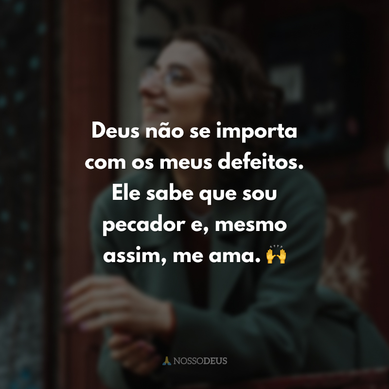 Deus não se importa com os meus defeitos. Ele sabe que sou pecador e, mesmo assim, me ama. 🙌