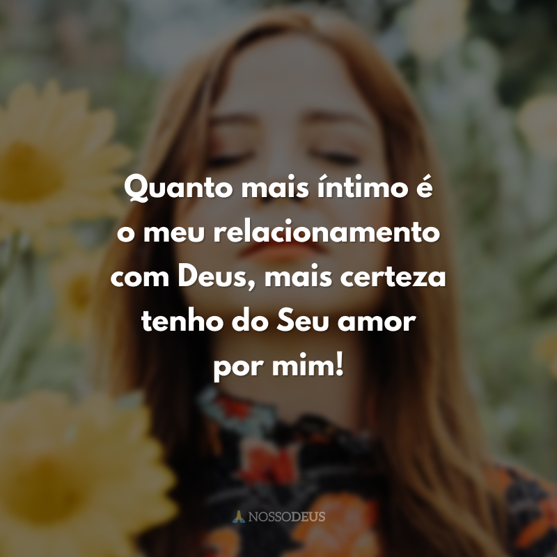 Quanto mais íntimo é o meu relacionamento com Deus, mais certeza tenho do Seu amor por mim!