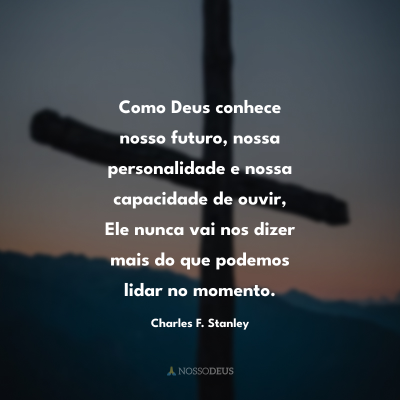 Como Deus conhece nosso futuro, nossa personalidade e nossa capacidade de ouvir, Ele nunca vai nos dizer mais do que podemos lidar no momento.