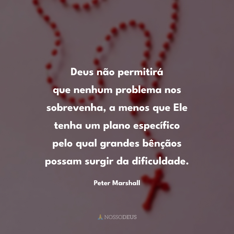 Deus não permitirá que nenhum problema nos sobrevenha, a menos que Ele tenha um plano específico pelo qual grandes bênçãos possam surgir da dificuldade.