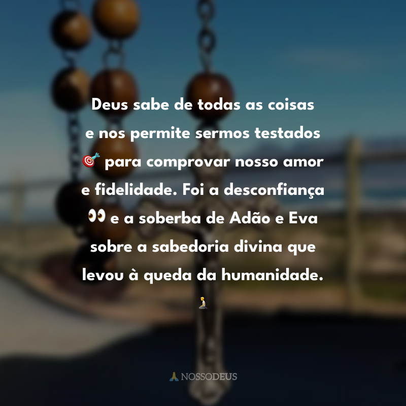 Deus sabe de todas as coisas e nos permite sermos testados 🎯 para comprovar nosso amor e fidelidade. Foi a desconfiança 👀 e a soberba de Adão e Eva sobre a sabedoria divina que levou à queda da humanidade. 🧎