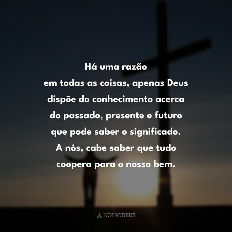 Há uma razão em todas as coisas, apenas Deus dispõe do conhecimento acerca do passado, presente e futuro que pode saber o significado. A nós, cabe saber que tudo coopera para o nosso bem.