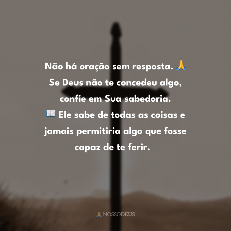 Não há oração sem resposta. 🙏 Se Deus não te concedeu algo, confie em Sua sabedoria. 📖 Ele sabe de todas as coisas e jamais permitiria algo que fosse capaz de te ferir.