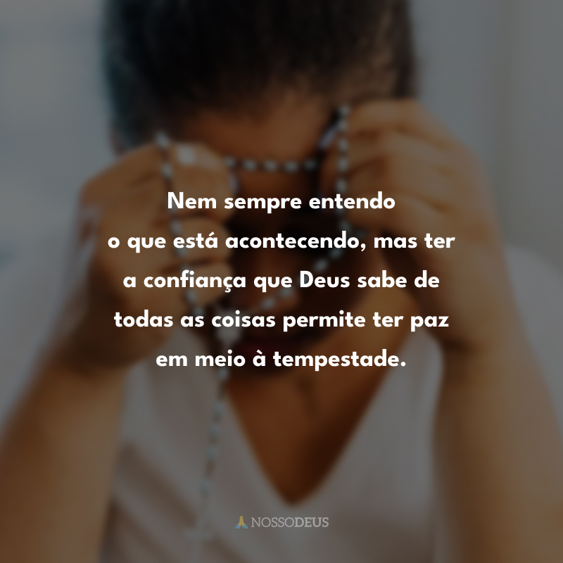Nem sempre entendo o que está acontecendo, mas ter a confiança que Deus sabe de todas as coisas permite ter paz em meio à tempestade.