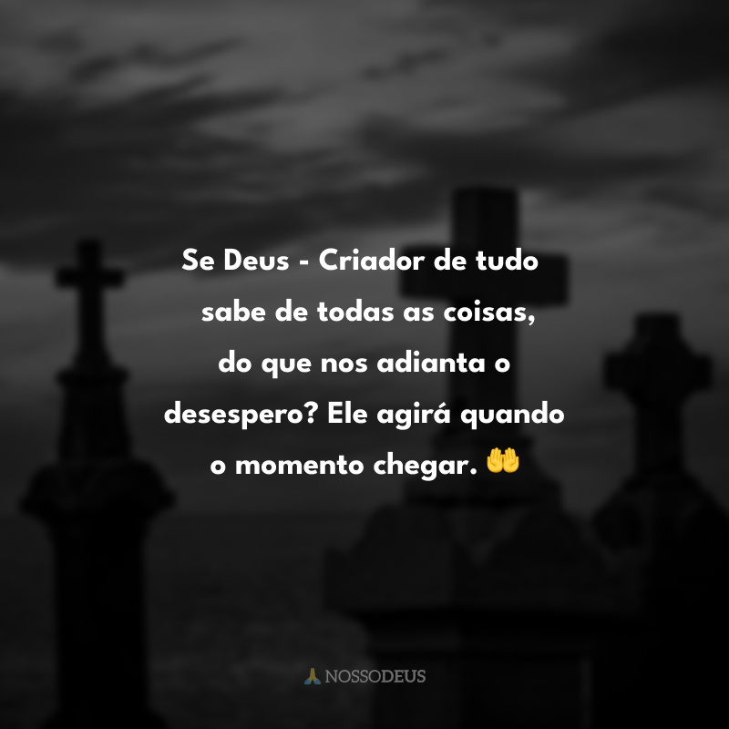 Se Deus - Criador de tudo - sabe de todas as coisas, do que nos adianta o desespero? Ele agirá quando o momento chegar. 🤲