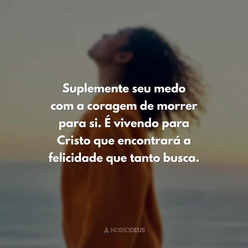 Suplemente seu medo com a coragem de morrer para si. É vivendo para Cristo que encontrará a felicidade que tanto busca.