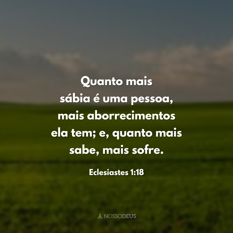Quanto mais sábia é uma pessoa, mais aborrecimentos ela tem; e, quanto mais sabe, mais sofre.