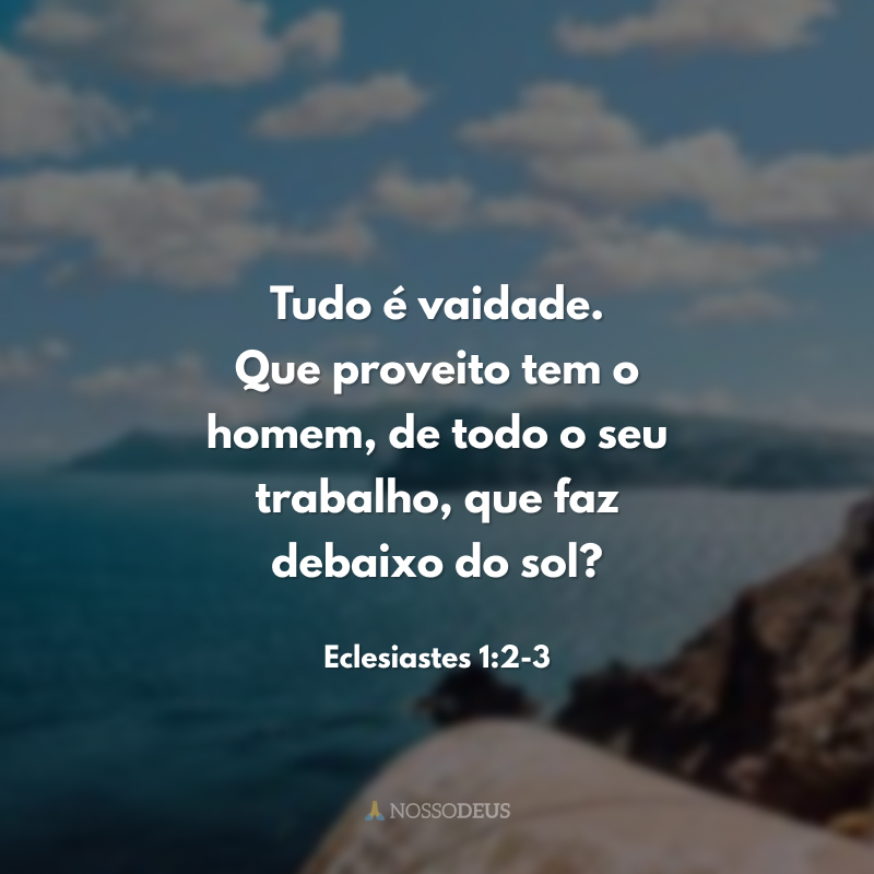 Tudo é vaidade. Que proveito tem o homem, de todo o seu trabalho, que faz debaixo do sol?