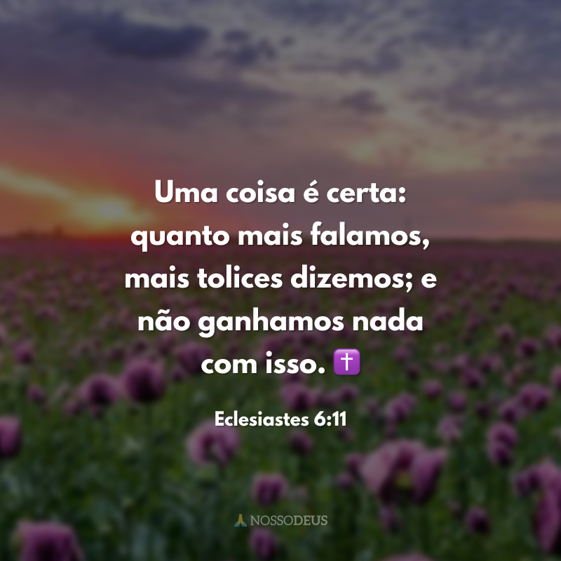 Uma coisa é certa: quanto mais falamos, mais tolices dizemos; e não ganhamos nada com isso. ✝️