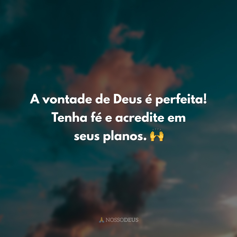 A vontade de Deus é perfeita! Tenha fé e acredite em seus planos. 🙌