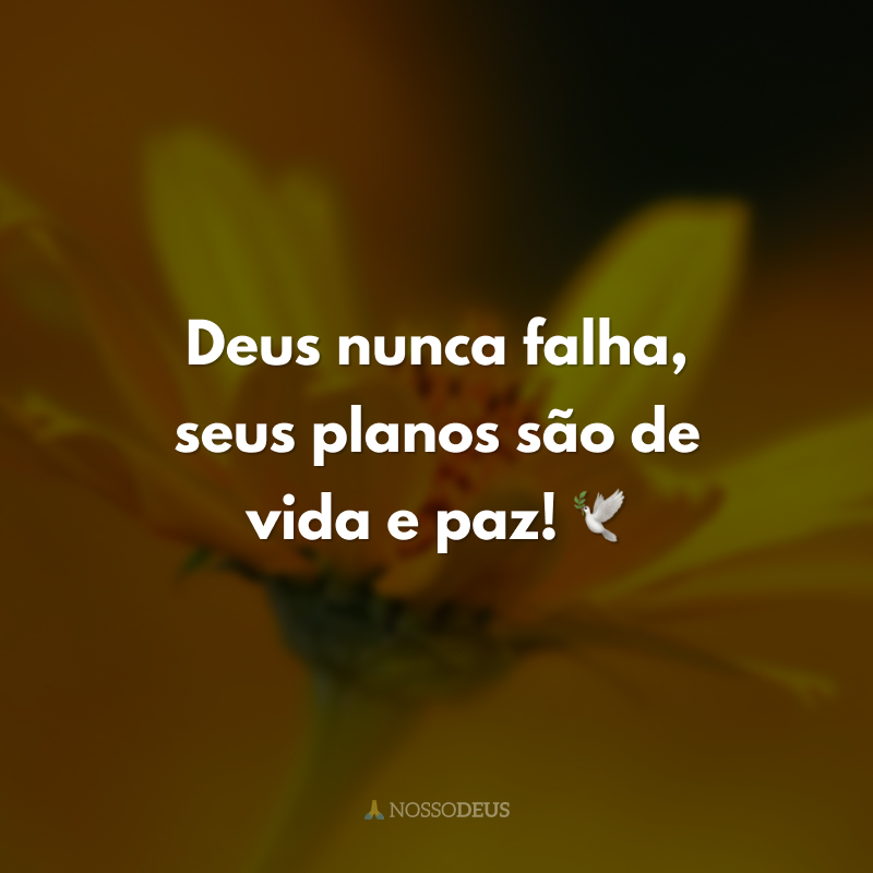 Deus nunca falha, seus planos são de vida e paz! 🕊