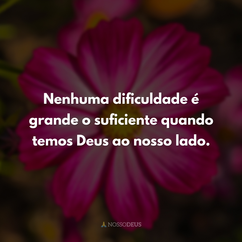 Nenhuma dificuldade é grande o suficiente quando temos Deus ao nosso lado.