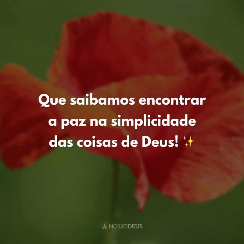 Que saibamos encontrar a paz na simplicidade das coisas de Deus! ✨
