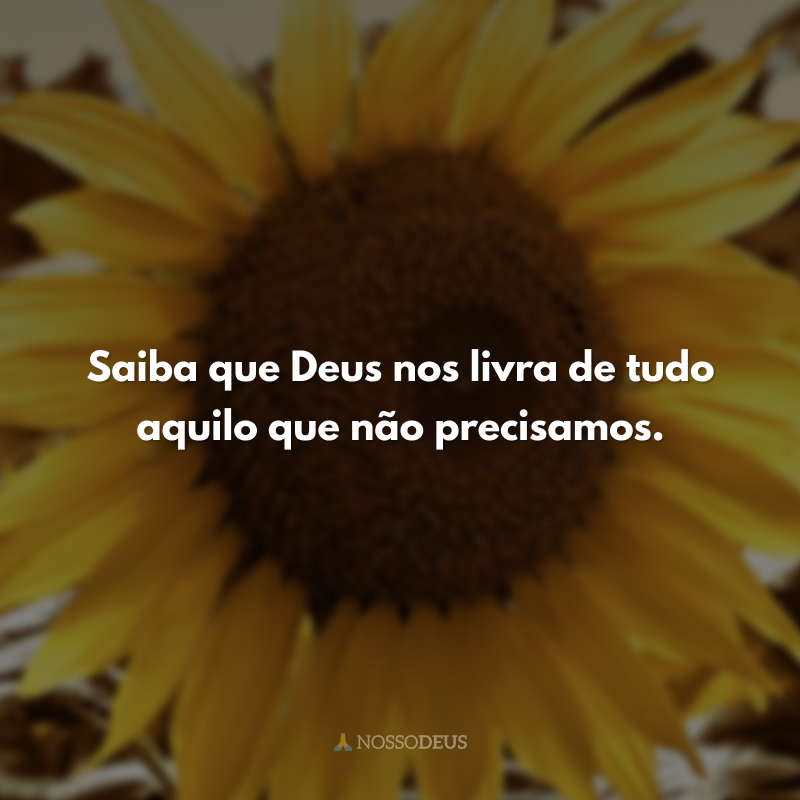 Saiba que Deus nos livra de tudo aquilo que não precisamos.