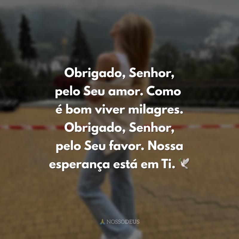 Obrigado, Senhor, pelo Seu amor. Como é bom viver milagres. Obrigado, Senhor, pelo Seu favor. Nossa esperança está em Ti. 🕊