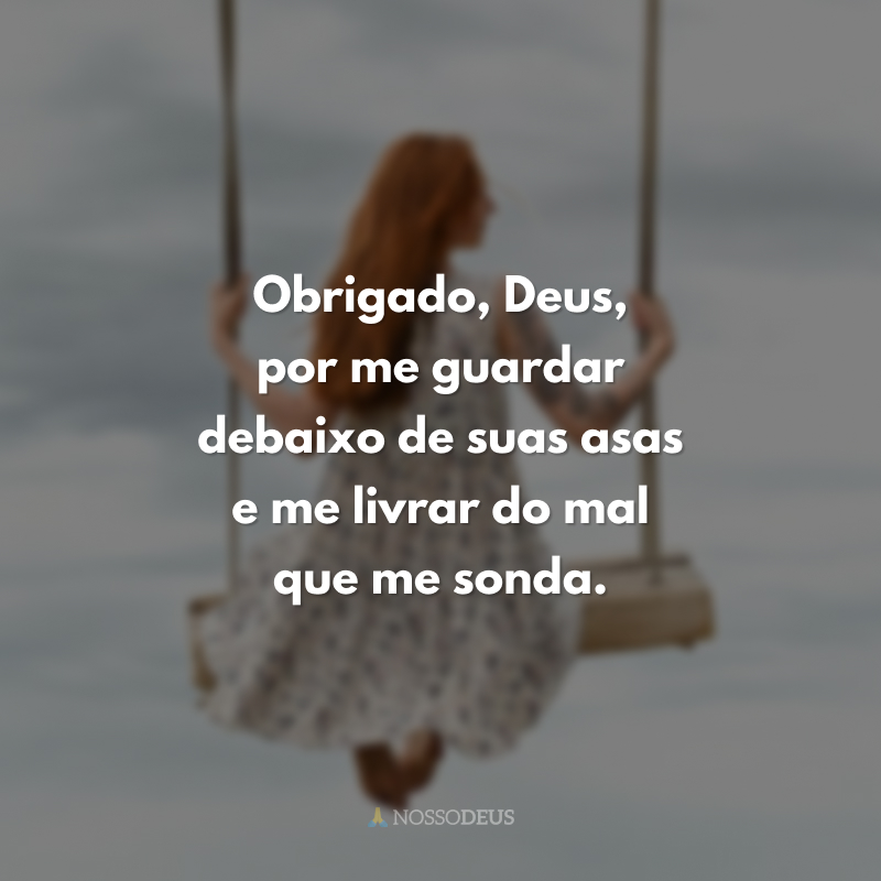 Obrigado, Deus, por me guardar debaixo de suas asas e me livrar do mal que me sonda.