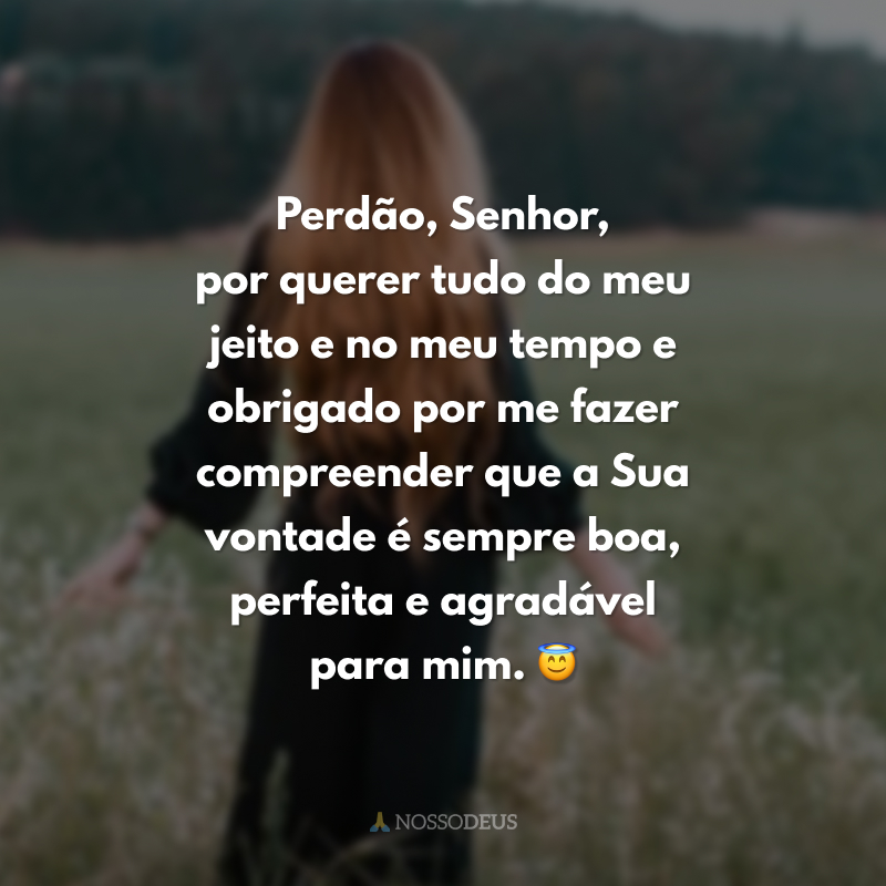 Perdão, Senhor, por querer tudo do meu jeito e no meu tempo e obrigado por me fazer compreender que a Sua vontade é sempre boa, perfeita e agradável para mim. 😇