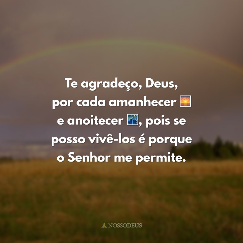 Te agradeço, Deus, por cada amanhecer 🌅 e anoitecer 🌃, pois se posso vivê-los é porque o Senhor me permite.