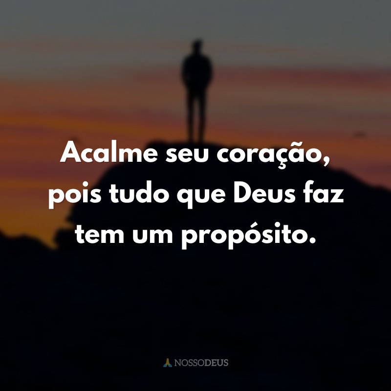 Acalme seu coração, pois tudo que Deus faz tem um propósito.