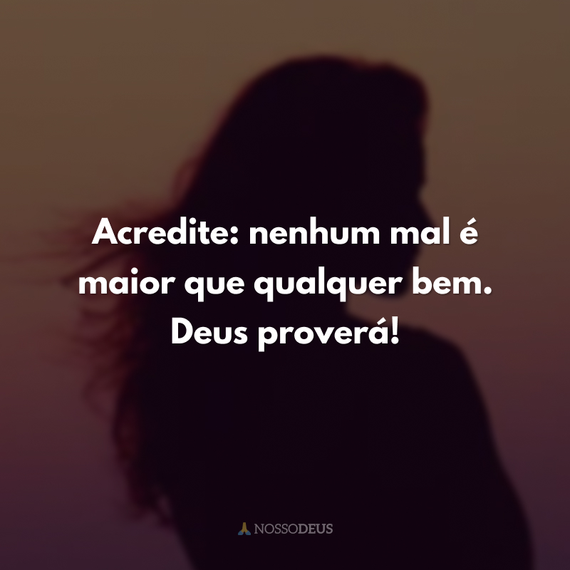 Acredite: nenhum mal é maior que qualquer bem. Deus proverá!