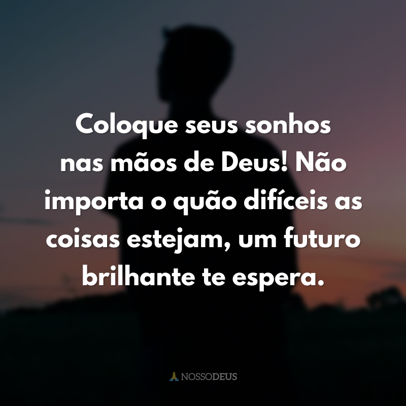 Coloque seus sonhos nas mãos de Deus! Não importa o quão difíceis as coisas estejam, um futuro brilhante te espera.