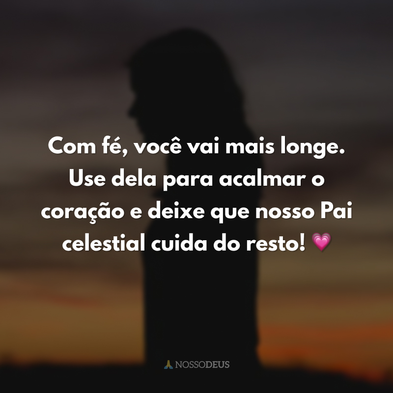 Com fé, você vai mais longe. Use dela para acalmar o coração e deixe que nosso Pai celestial cuida do resto! 💗