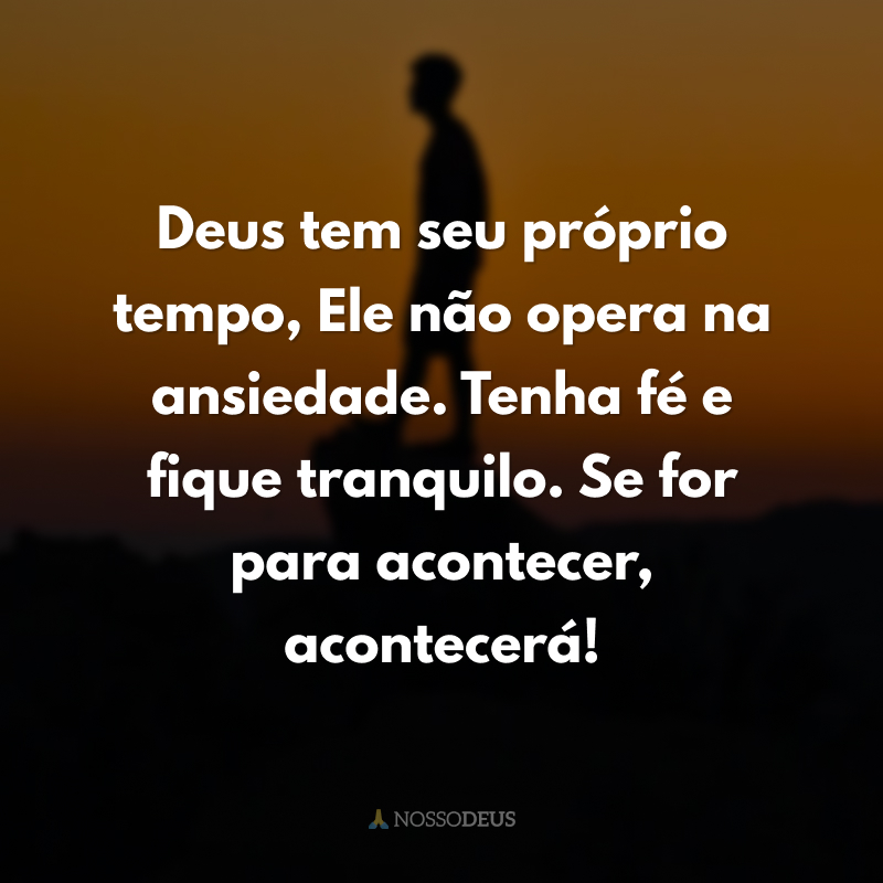 Deus tem seu próprio tempo, Ele não opera na ansiedade. Tenha fé e fique tranquilo. Se for para acontecer, acontecerá!