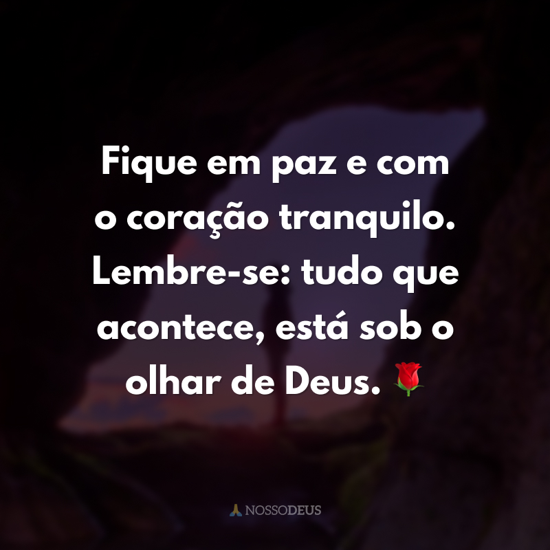 Fique em paz e com o coração tranquilo. Lembre-se: tudo que acontece, está sob o olhar de Deus. 🌹